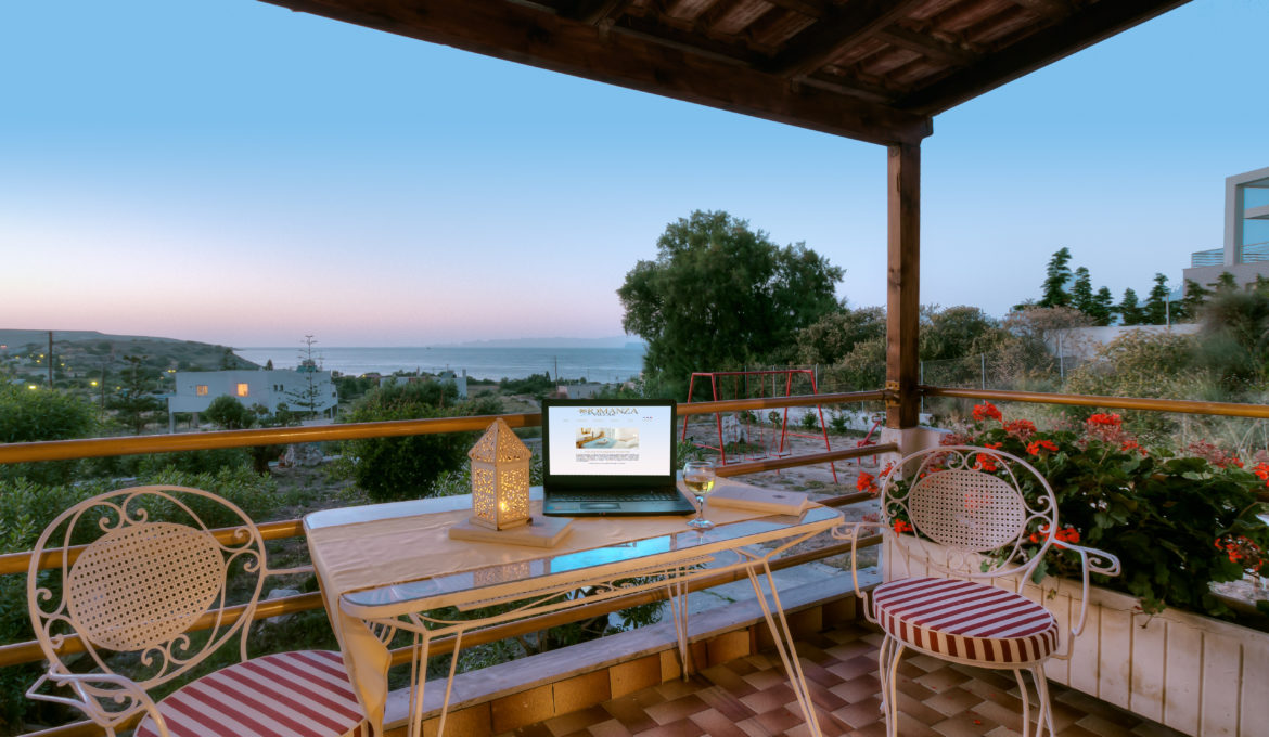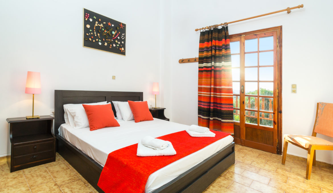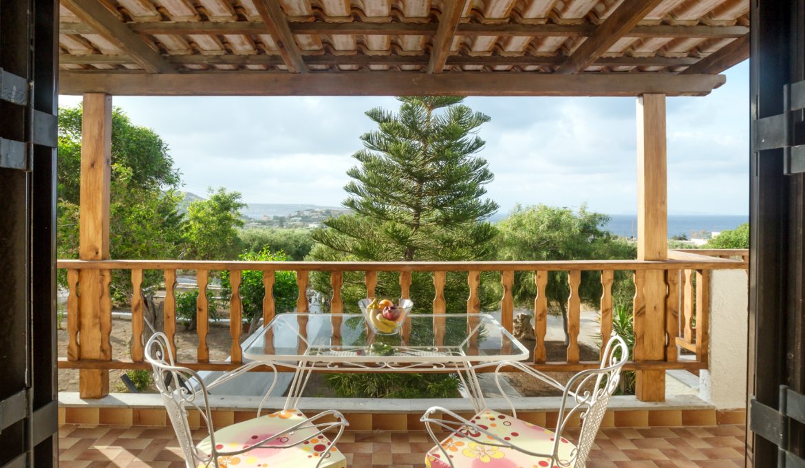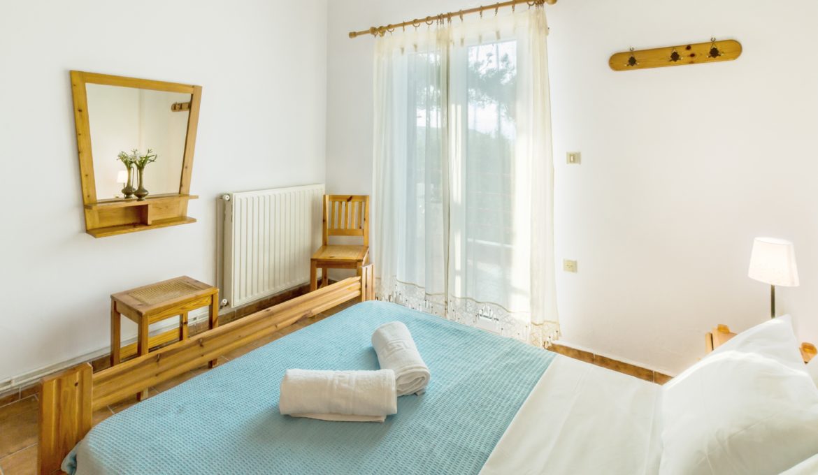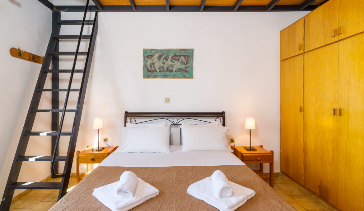 It consists of a spacious living room with 2 single beds, a double bedroom, a bathroom with shower, a kitchen and a private terrace with sea view. It has a large fridge, 32 ” LCD TV and air conditioning throughout and can accommodate up to 4 guests.